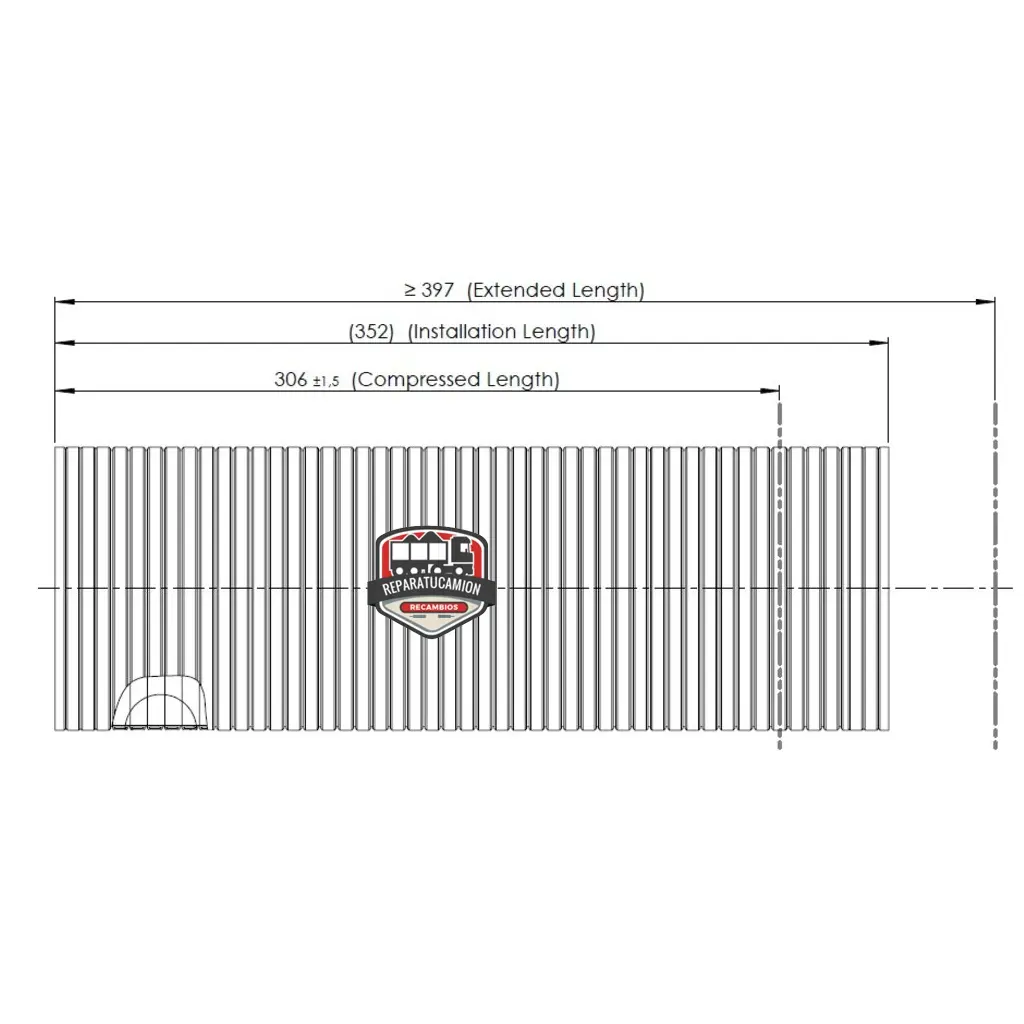 Medidas: Longitud 352/397 mm, diametro exterior 119 mm, diametro interior 116 mm